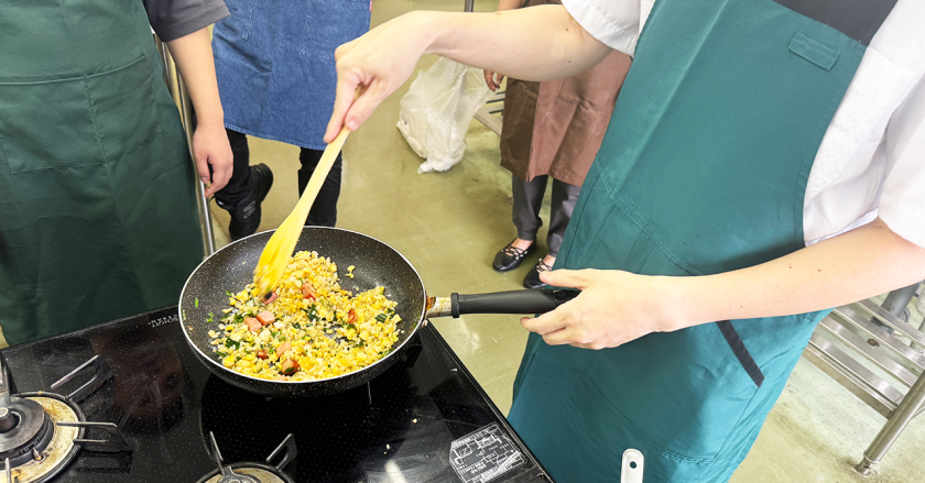 チャーハン作りを熱心に学ぶ皆さん