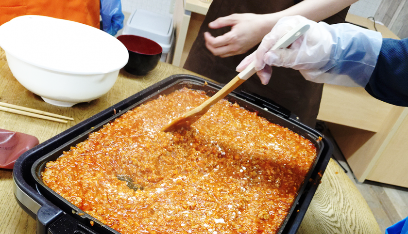 今回は調理実習室と違い、一人暮らしと同じく限られた調理器具を利用した料理なので、より一人暮らしを想定しやすい雰囲気でした。