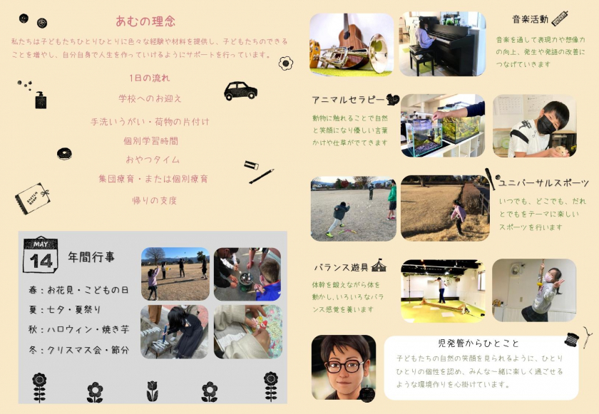昭和町に新しくできたオシャレな放課後等デイサービス 子どもたちひとりひとりに様々な経験を提供し、1本1本糸を”あむ”ように体験を重ねひとりひとりが大きく育つようにサポートをしてまいります。