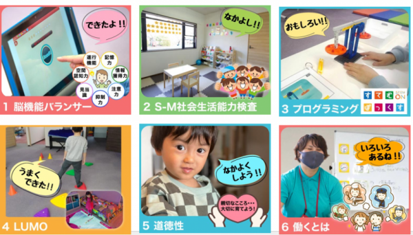 『一人ひとりの障がいと向き合い、特徴を知り、児童達にあった支援をご家族と共にサポートする。』(経営理念)将来の自立、親無き後の生きる為に必要なモノサシを1つでも多く手に入れてもらえるように、SM社会生活能力検査を基に、個別・集団療育の支援計画を立案する。プログラムを通じて、安心・安全な広々した療育空間で選べる豊富な体験活動(食育・音楽・運動・体験)