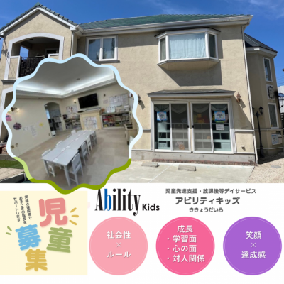 アビリティキッズでは、お子様について気になっているところ、気になる行動の具体的な対応の仕方について、ご相談をお受けします。お子様の特性や課題等を一緒に考え、お子様一人ひとりの得意を伸ばすための支援プログラムを立て、細やかな支援を行っていきます。人と関わることの楽しさや「できた」という達成感を味わい、自尊心を高めることを目的としています アビリティキッズききょうだいらでは ・社会性 × ルール ・成長(学習面、心の面、対人関係) ・笑顔 × 達成感 を大切に支援しています 続きを見る