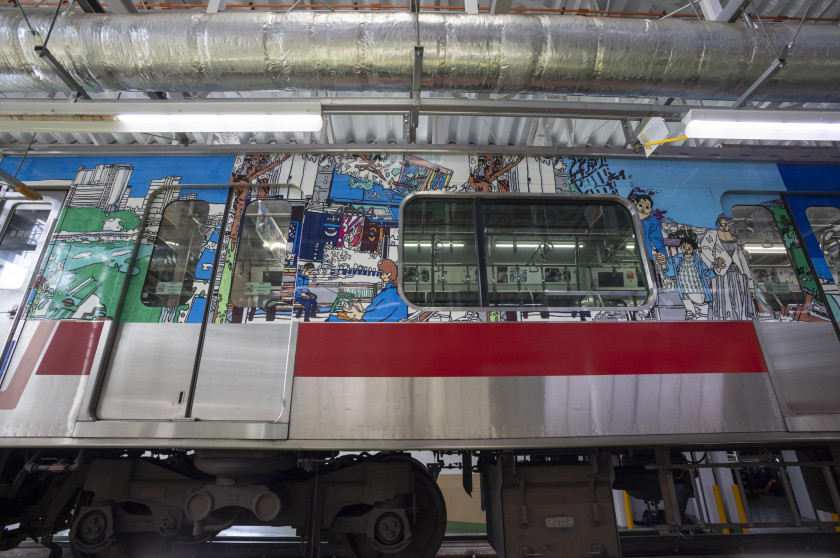 アートラッピング車両は11月4日から東横線で1編成、11月25日から田園都市線で1編成、当面のあいだ運行しています。また、2026年1月末までを目標に車内媒体のジャックも予定されており、本取り組みへの趣旨や想い、中島さんの作品を掲出することになっています。