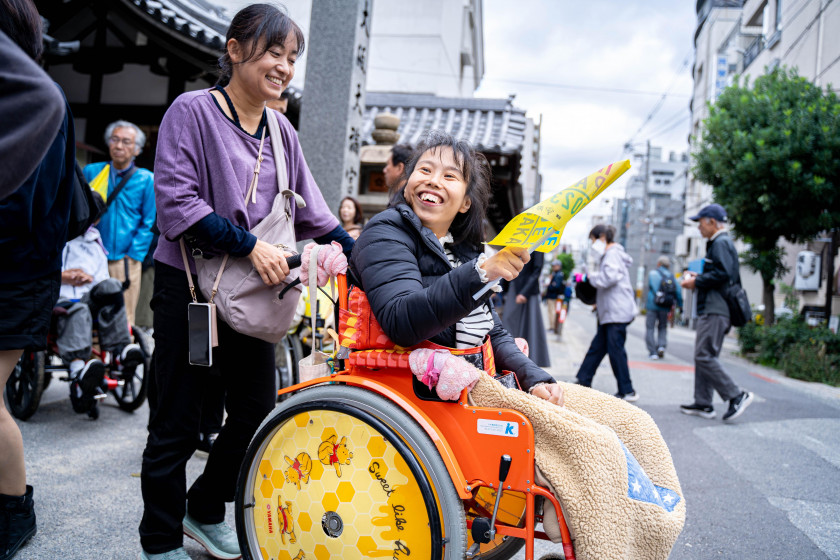車椅子利用者や視覚障害者、小さな子どもを連れた家族なども参加しやすいよう、バリアフリー対応のルートを設定しています。当日は福祉や医療を学ぶ学生ボランティアをはじめ、地域の人々が参加者を支え、共にイベントを創り上げます。ボランティアにとっても、多様な人々と関わる実践的な学びの場となっています。
