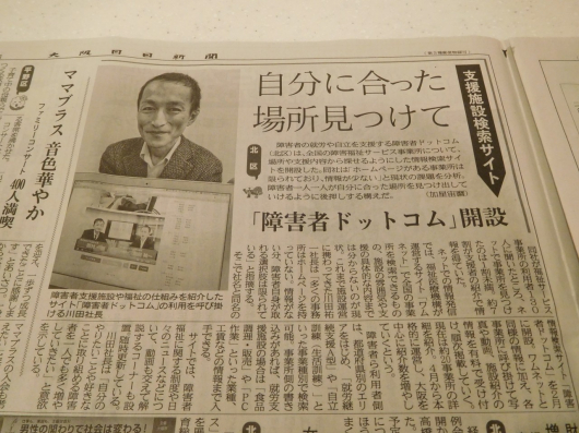 2016年3月16日の大阪日日新聞にて弊社の「障害者ドットコム」サイトが紹介されました。