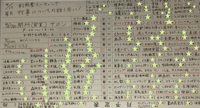 原則として、月曜日から金曜日に営業しています。 毎週土曜日に、施設外就労を行っています。 臨時に土曜日、祝日に営業を行うことがあります。 仕事が重なった場合に、日曜日にも営業を行うことがあります。 |