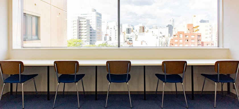 リワークセンター広島駅前はビル6Fにあり、日当たりがよく、開放感のある事務所です。