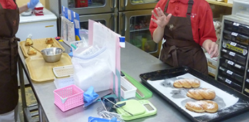 主となる製菓や製パン作業に加えリパックやシール貼りなどの下請け作業を通じ利用者の方々に「やりがい」や「達成感」を得て頂けるよう取り組んでいます。 余暇活動の分野でも春・秋、季節の行事や新年の慰労会、3年に一度の社会見学旅行などの行事を提供しています。