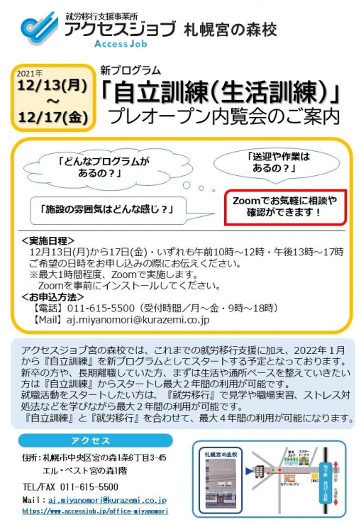 *2022年1月『自立訓練』が新プログラムとしてスタート予定 *現在、認可申請中
