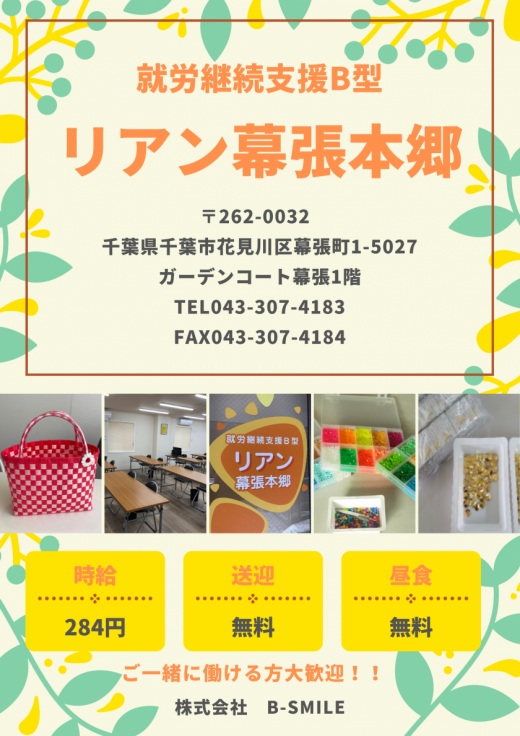 リアン幕張本郷では障がいを持たれた方がありのままで、安心して通える事業所を目指しています。