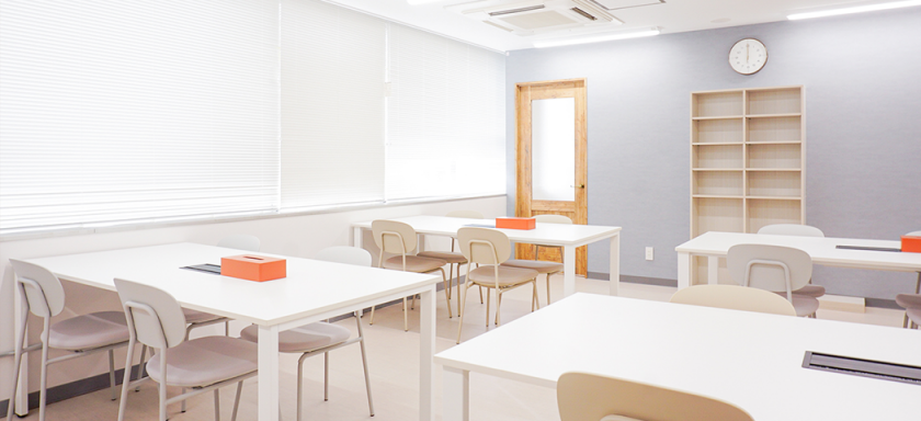リワークセンター藤沢は、白を基調とした明るく爽やかな空間で、利用者さま一人ひとりに合わせた復職や就職のサポートをおこなっています。
