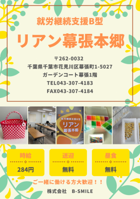 2022年12月にオープンしました新しい事業所です。 リアン幕張本郷では障がいを持たれた方がありのままで、安心して通える事業所を目指しています。 先ずはお気軽にご連絡下さい! 続きを見る