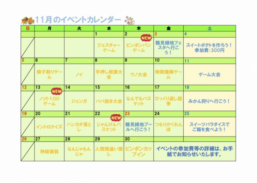 11月と12月のイベントカレンダー❄️