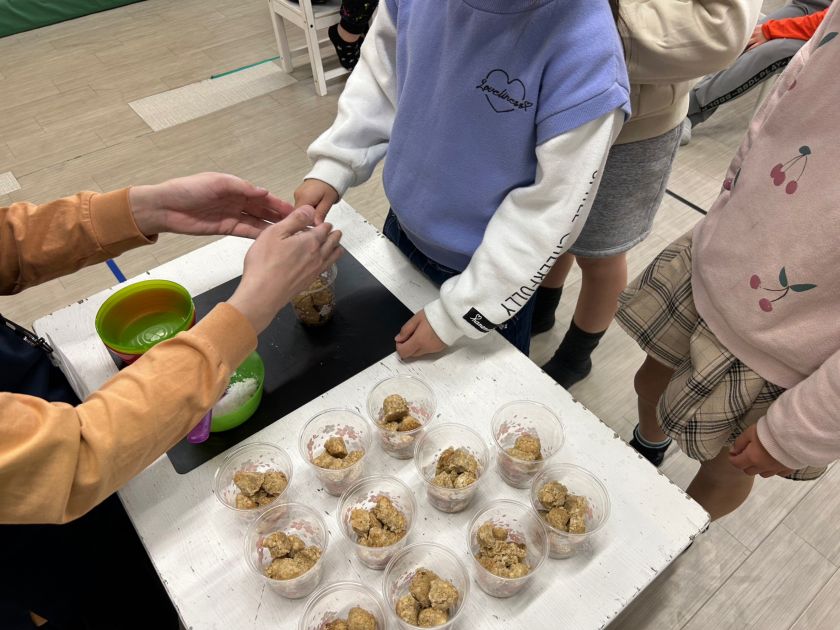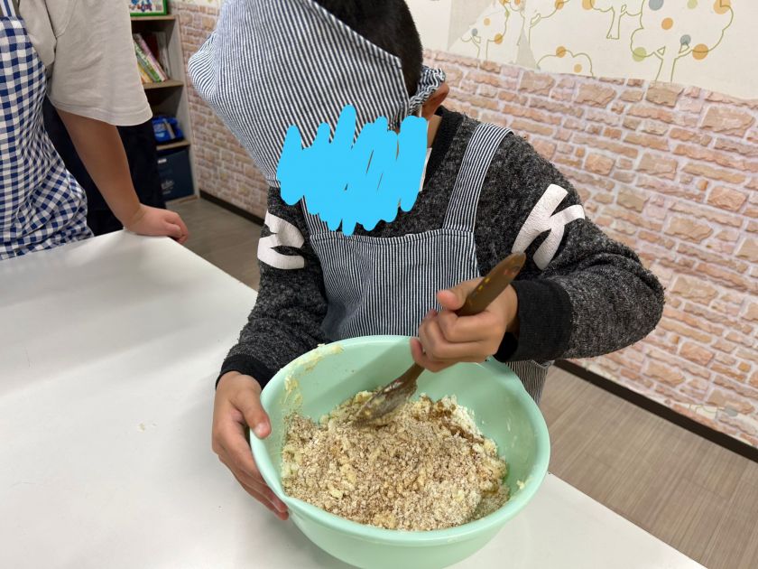 しっかりと職員のお話を聞いて、みんなで材料を混ぜていきます!