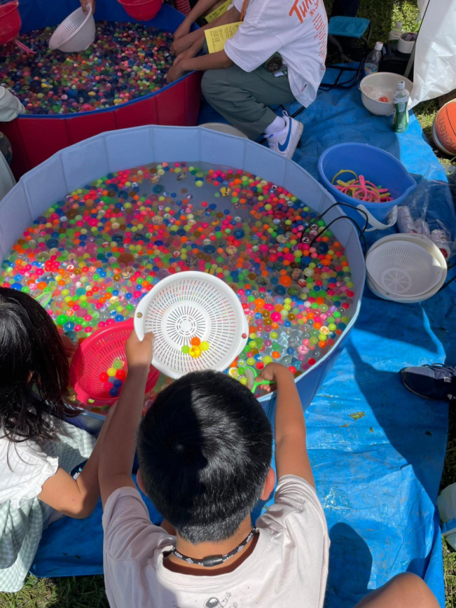 お祭りでは、主催者の方々が1時間ごとに集団レクレーションをひらいてくれていました。アカデミーの子どもたちも参加し地域児童と交流をし遊びました。