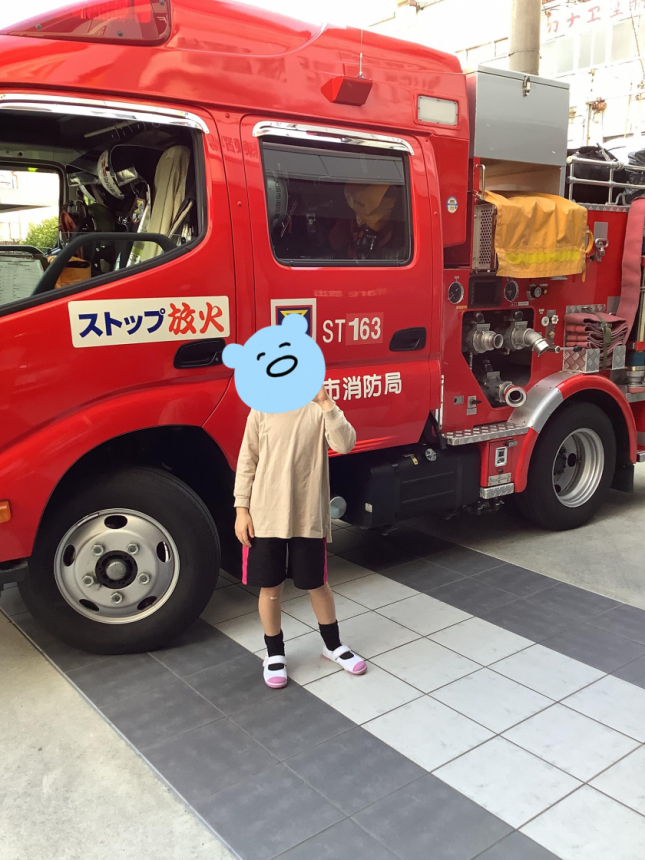実際の消防車の見学、消火器の使い方を教えていただきました。