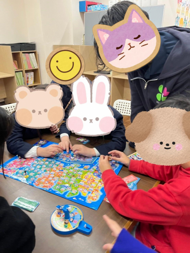 昼食を食べ終えて、勉強スペースでゲームの説明をして早速ゲーム開始です✨