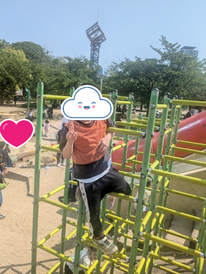 公園では、大きなローラー滑り台を何度も滑ったり、アスレチック型の遊具を使って鬼ごっこをしたり