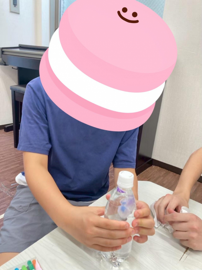 8月23日は夏休みの自由研究で、ペットボトル、ナット、