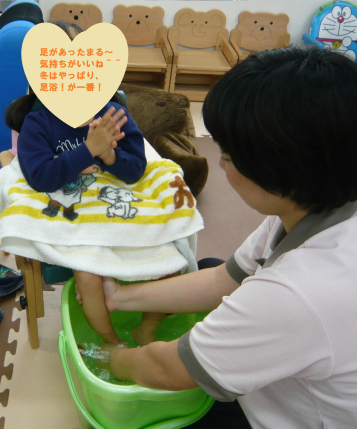 子どもたちは、お家の方に暖かい靴下を履かせてもらって登園しています。