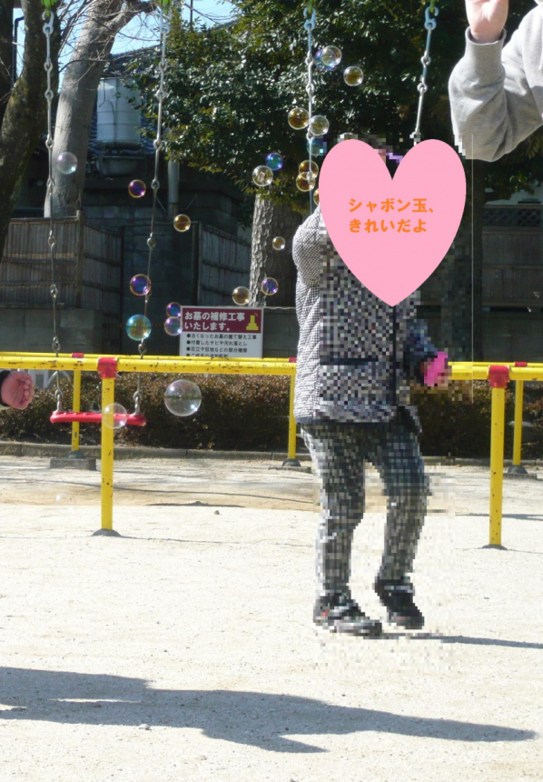 みんなで近くの公園へ行き、シャボン玉を飛ばしました^^