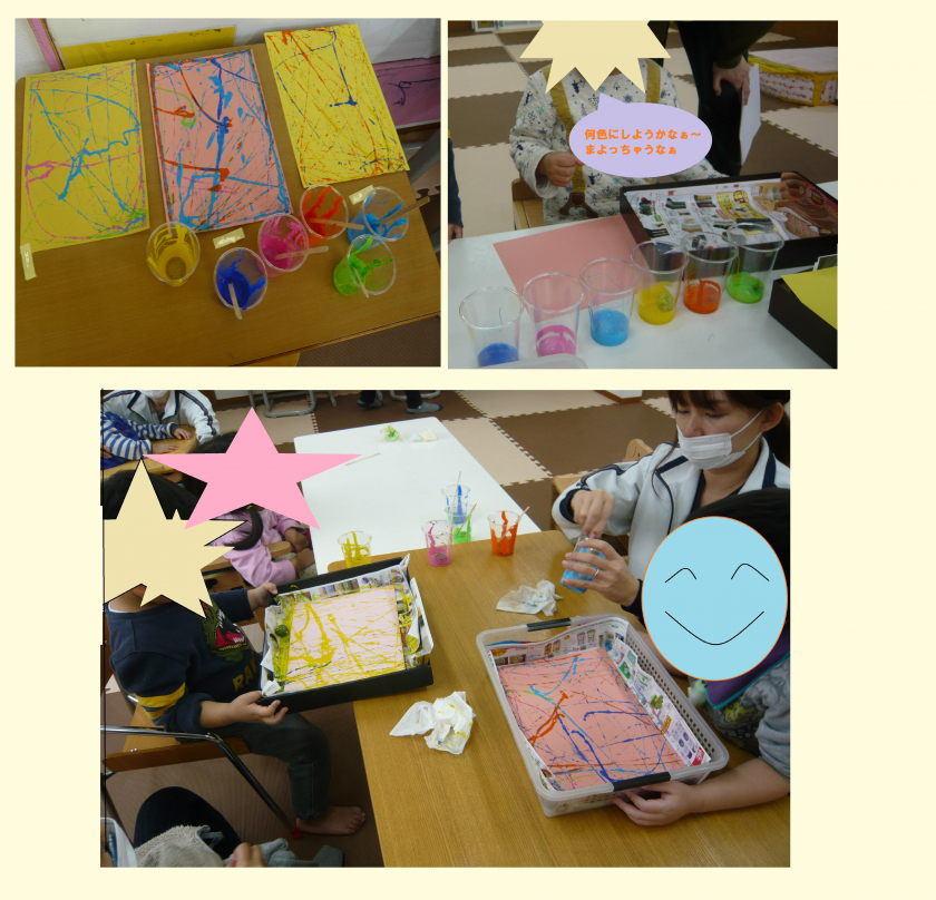 コロコロ転がしてきれいな色が付くと、「わ~すごいね~きれいだね~」と歓声が上がります^^