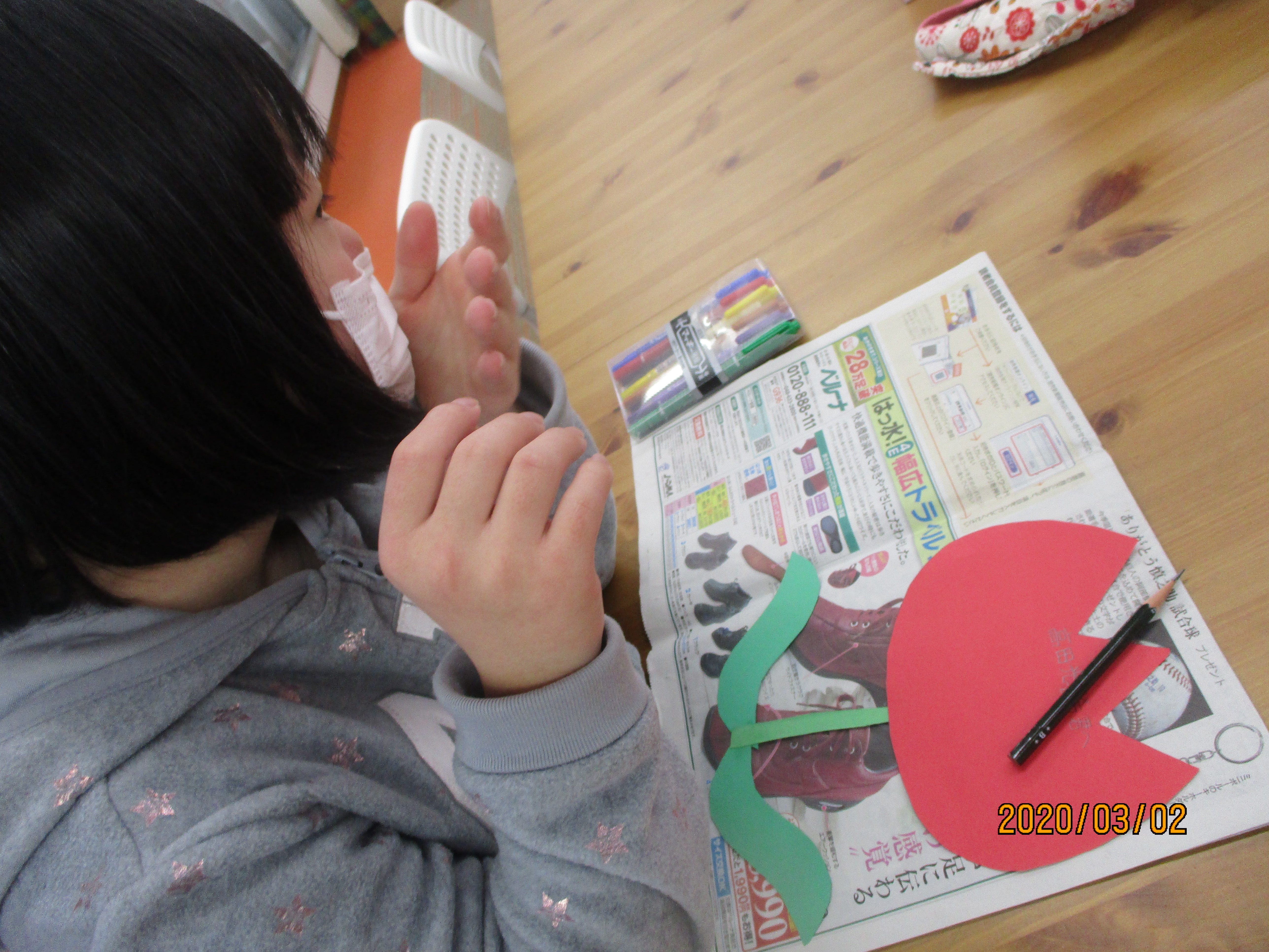 毎年同様みんなで、卒業生へ向けたメッセージを書いたり、春の飾り付け、『旅立ちの日に』を歌うなど、季節を感じられる活動に楽しみながら取り組んでいます。