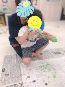 大きな紙を敷くと、みんな興味津々で集まってきて