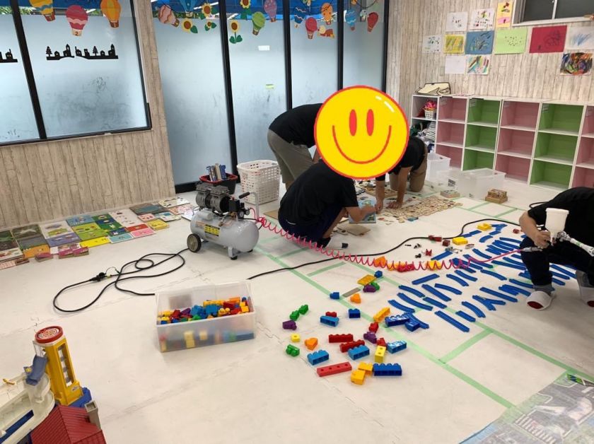 おもちゃと本のコーティングが終わった後は今度は施設内のコーティングに取り掛かられました。これだけ大変な作業も1時間ほどで終えられました。さすがはプロ!