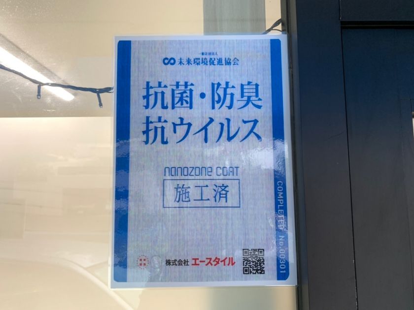 コーティング完了の証として施工済みのシールをいただきました。(画像の分はシールをスキャニングして印刷しラミネートしました。)事業所の入り口に貼ってます!