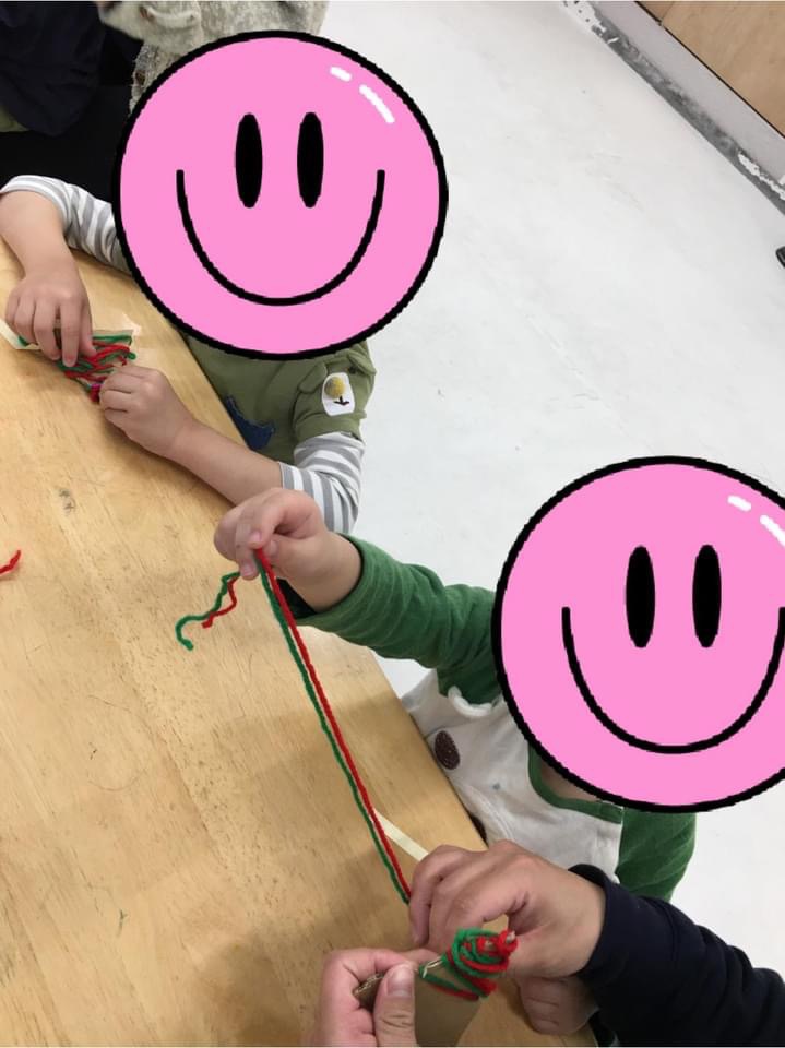 こちらの男の子は、やりきったというのを体で表現してくれました!完成した作品も毛糸の巻き方に個性が出ていますね!!ステキな作品が完成しました!