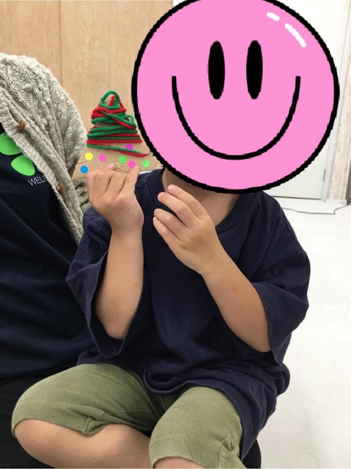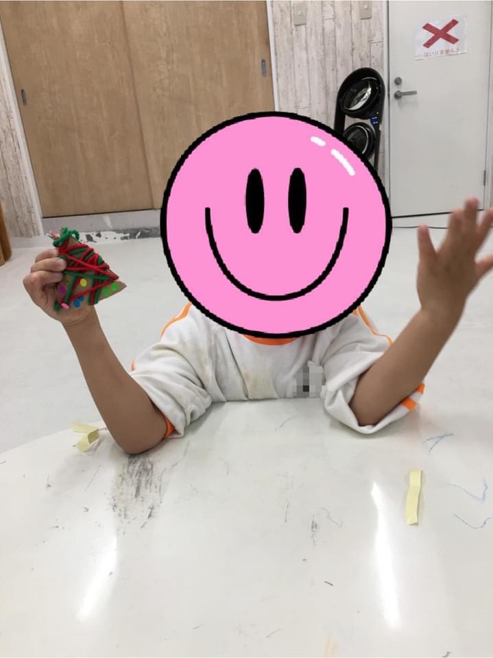 こちらの男の子は先生と一緒に制作を行いました!かわいらしいクリスマスツリーができました!!クリスマスツリーの特徴を捉えよくできていますね(^^♪