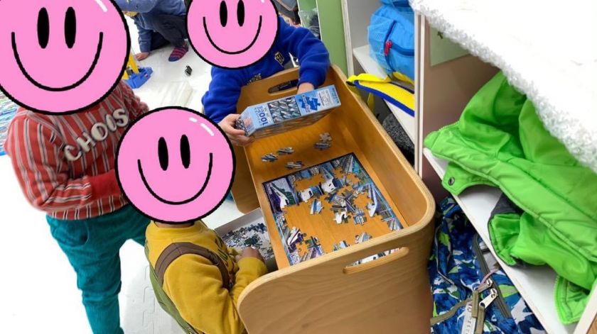 100ピースパズルを組んでいた男の子のことを応援していた男の子のうちの一人が、