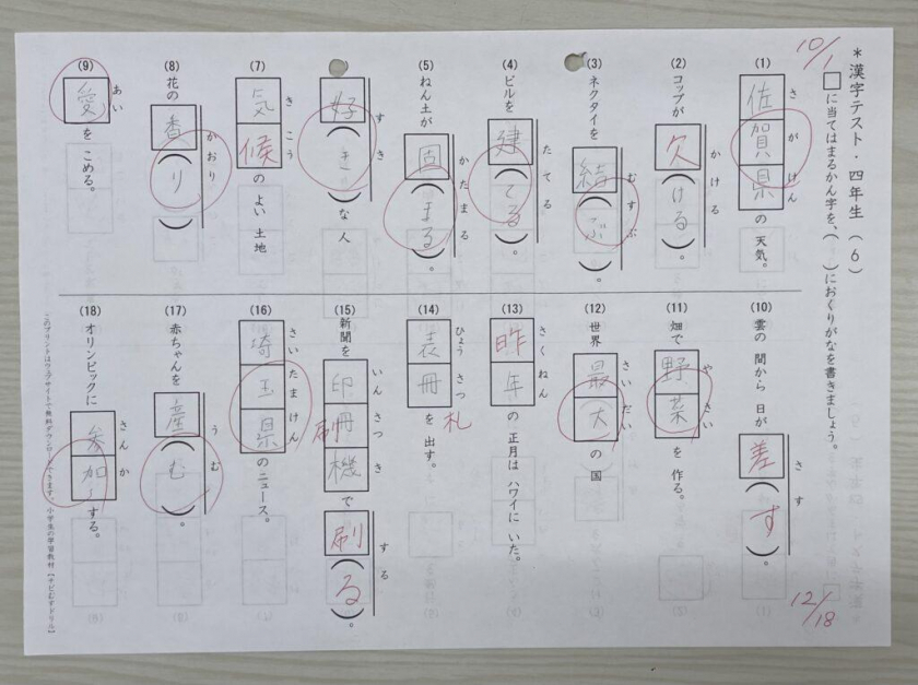 中学年〜高学年の児童には漢字テストを行ったりとして、正しく書くことができるか、覚えられてるかの確認のため取り組んでもらっています