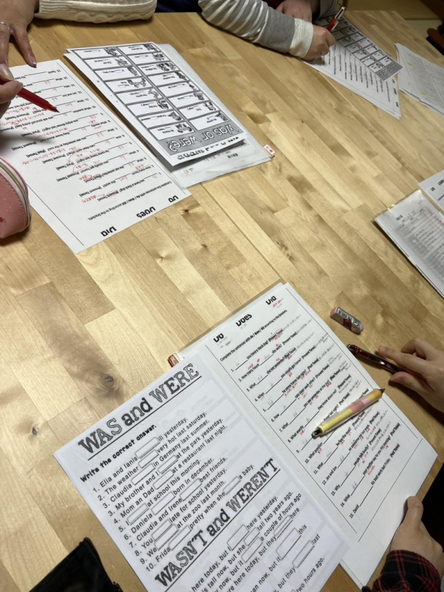 【is】と【are】の過去形なので以前習ったものを復習しながら行いました(^^)💓