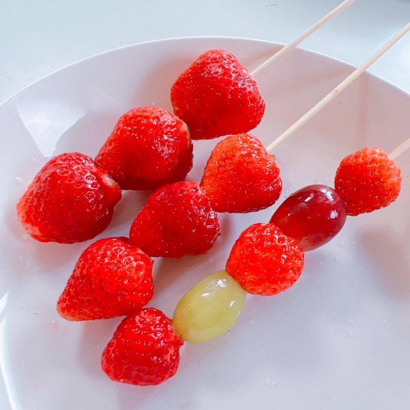 そのあとは一人一人串に自分の好きなようにいちごとぶどうを刺していきました✨