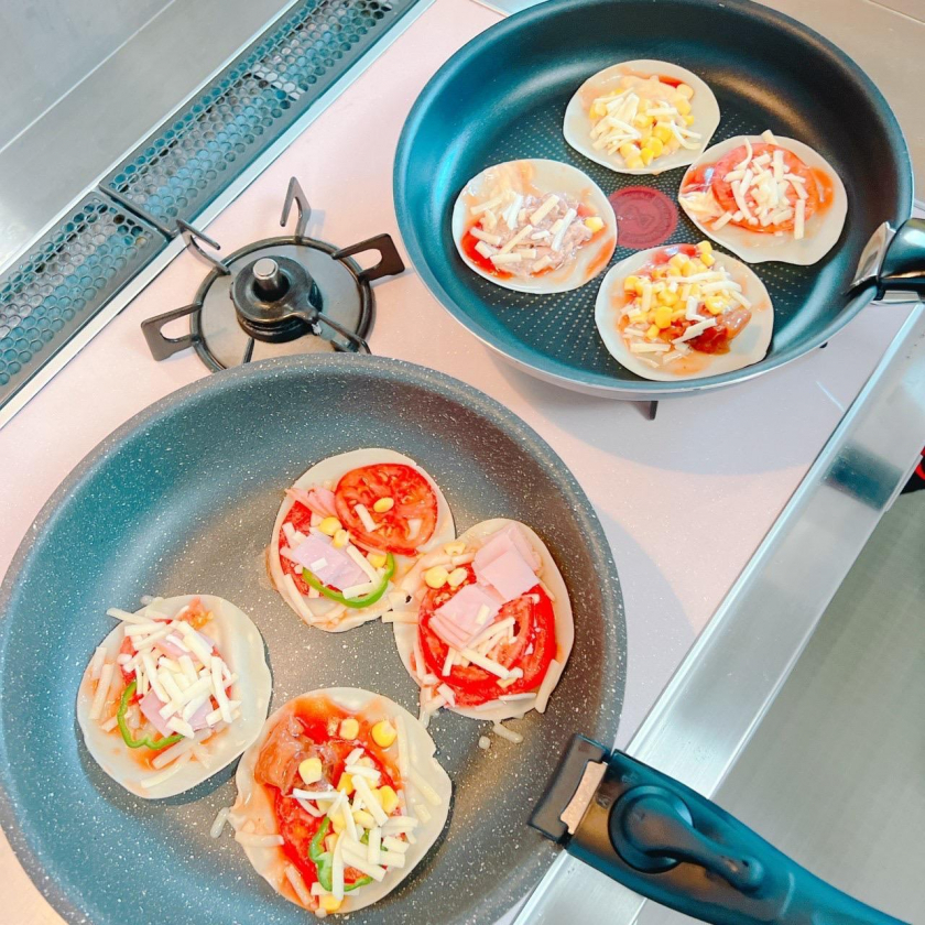 生地からは少し難しいので餃子の皮を使ってパリパリのミニピザを作りましたよ~🤤🍴