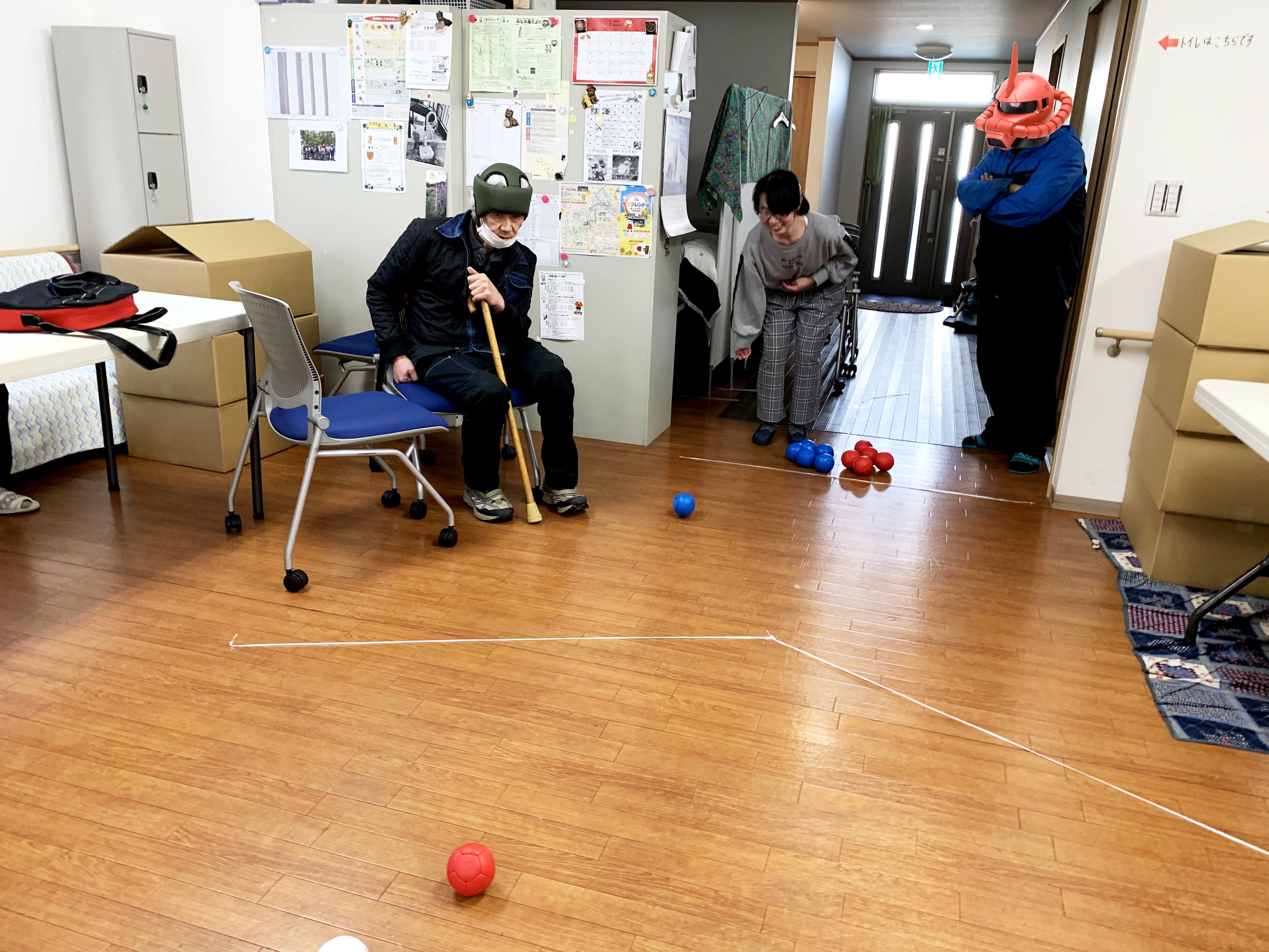 終業後は、希望者を募って初めてのボッチャ体験会!