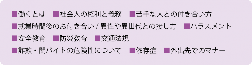 就職実現に向け、お仕事で必要な知識だけではなく、生活する上で必要なスキルや考え方なども研修しております。