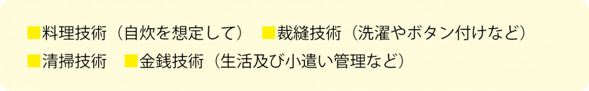 将来自活できるよう、生活技術を高める研修を行ないます。