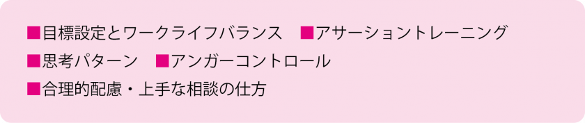 ストレス緩和、成長、課題改善などにより、自分を見つめ直す研修を行ないます。