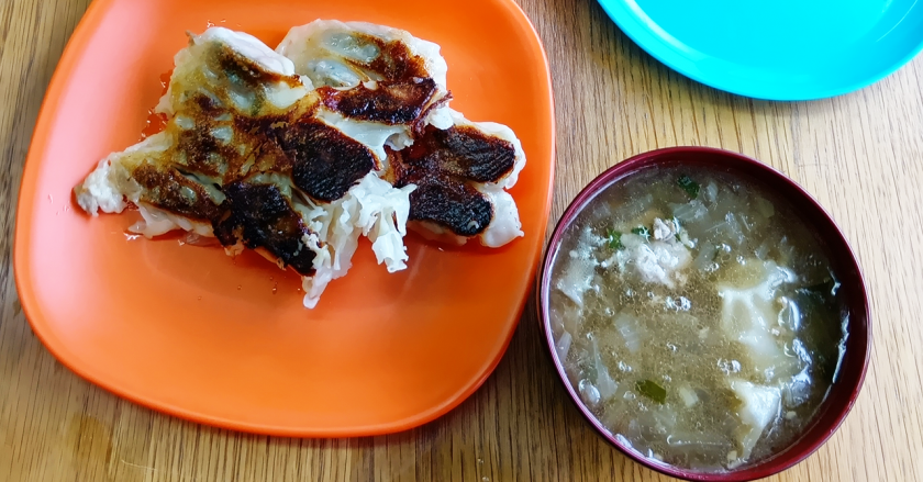 今日の献立は“餃子”と“スープ”そして“ケーキ”。
