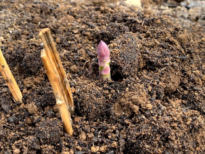アスパラは収穫できるまで時間がかかるので、去年は収穫できずでした。