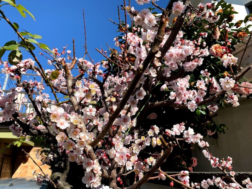 冷たい小雨降る中ポスティング。かわいい梅。種を買いに。