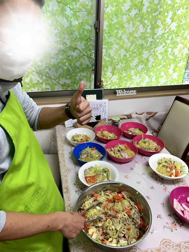 利用者さんとスタッフのまかないを作っています。