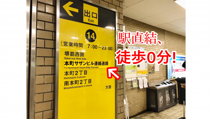 大阪メトロ堺筋本町駅14番出口から徒歩0分。