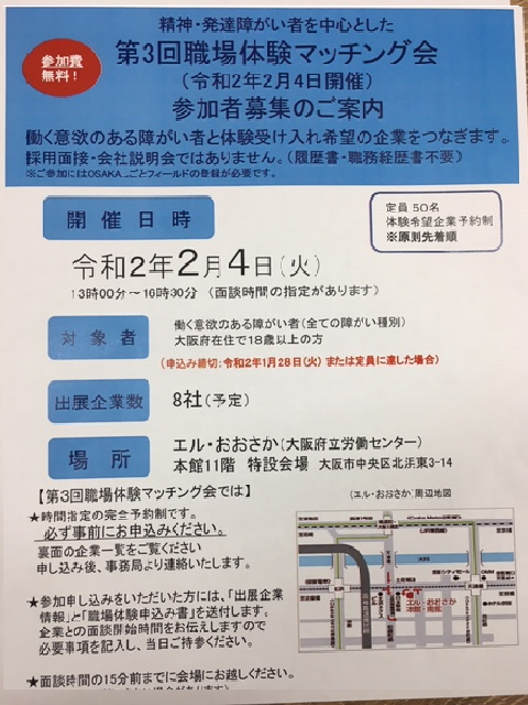 また早速2月には毎回、大勢の方が参加される「職場体験マッチング会」の開催の案内が来ました。