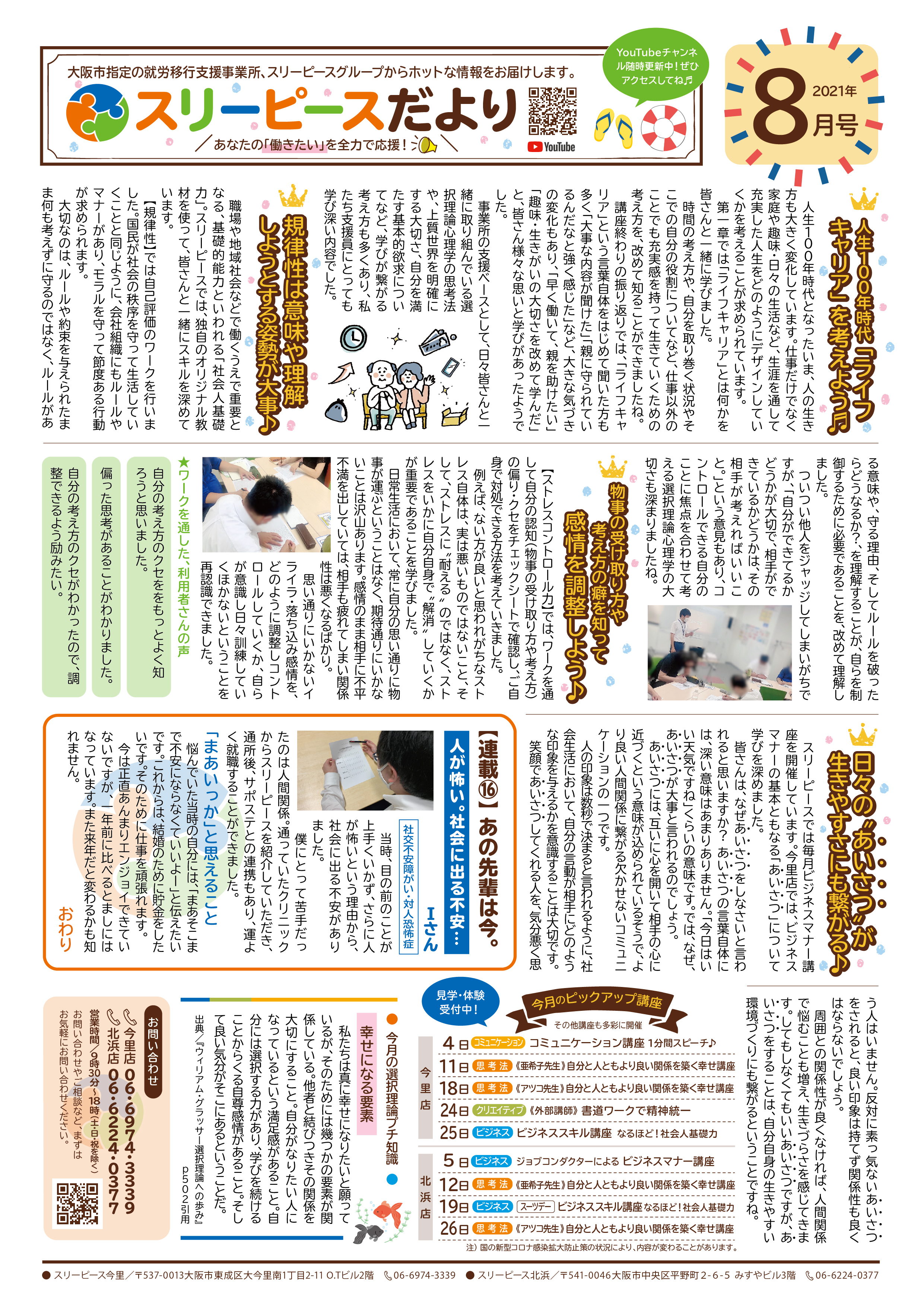 大阪にある就労移行支援事業所スリーピースでは、精神疾患(うつ病等)、発達障がい、ひきこもりの方を就職活動から職場定着まで、就職定着率にこだわり、お一人おひとりにあった働きたいをサポートしています。
