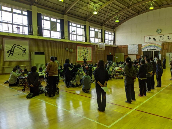 比較的、パニックに陥る子もなく、後に運動場へ小学部・中学部・高等部の全員が避難。