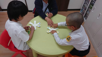 当施設では毎日日替わりで5種類(レクリエーション・工作・感覚あそび・音楽あそび・読み聞かせ)の小集団活動を行っています。 手先の巧緻性を高めたり、指示を聞く・簡単なルールを守る・お友だちと協力したり自身で考え創造する力を養います。