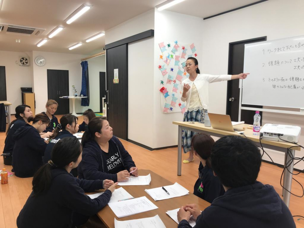 1、 子どもたちを元気にするにはまずはスタッフから 弊社オリジナルメソッド「えがお療法サポートプログラム」は自分の心と向き合って自分を認め、他人を認め、自然に笑顔のなれる研修です。スタッフはもちろん、子ども向け、利用者のママ向け、学生向け、福祉事業向け、大阪モード学園などの大手企業にも導入しています。人とのコミュニティ、愛する家族、友達、明るい社会を創造していくには全ては人の“笑顔”から。